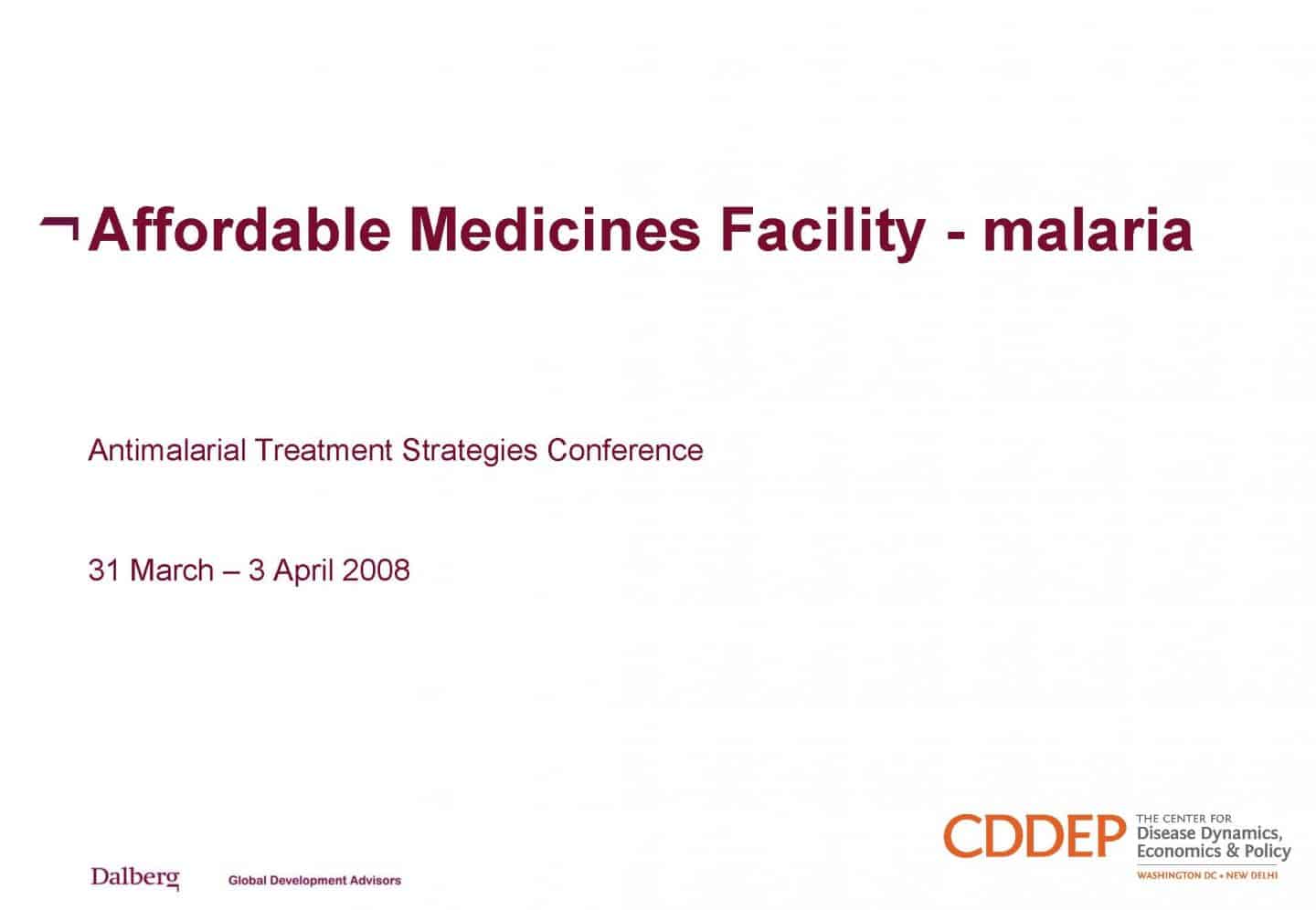 A power point presentation on the history, design, and impact of the Affordable Medicines Facility–malaria (AMFm) project, by Soren Andreasen, Dalberg – Global Development Advisors, Germany.