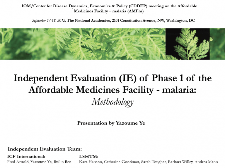 Independent Evaluation (IE) of Phase 1 of the Affordable Medicines Facility – malaria: Methodology